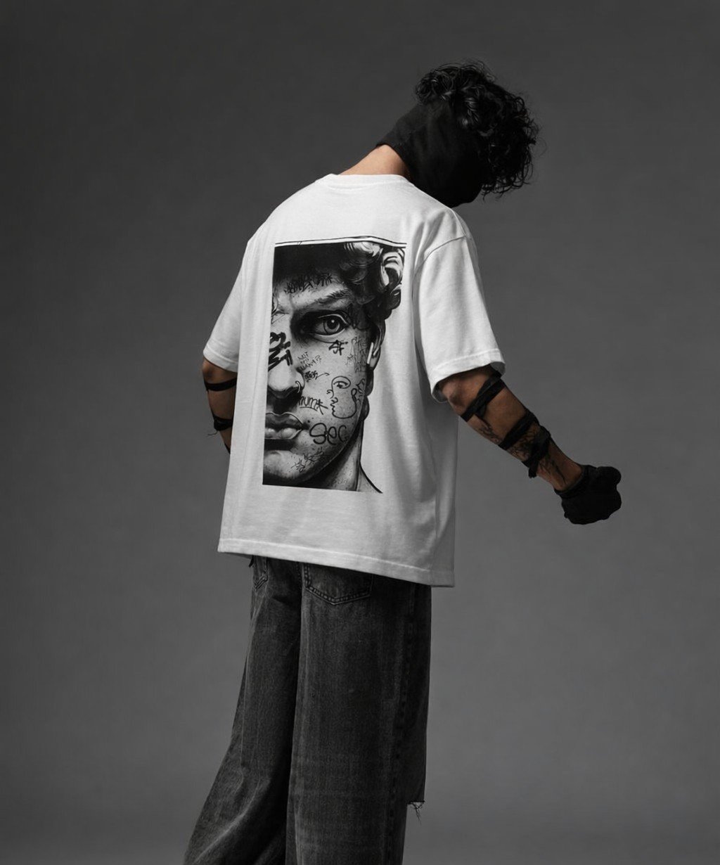 Designed with an artistic, modern graphic print, this T-shirt blends classic art inspiration with contemporary urban fashion. The relaxed unisex fit ensures versatility, making it easy to style for casual outings, streetwear looks, or layered outfits. Whether paired with jeans, cargos, or shorts, this tee elevates your wardrobe with minimal effort.